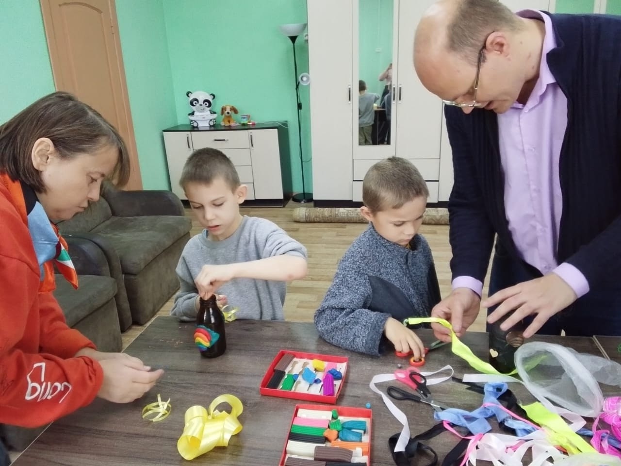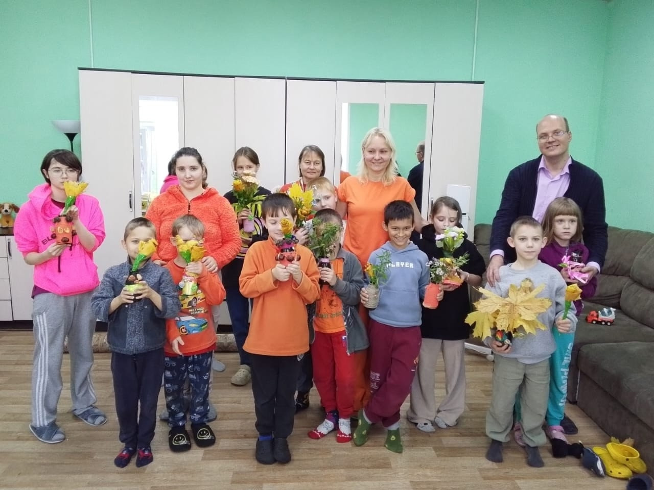 Православные добровольцы навестили детей, оставшихся без попечения родителей, помогли в проведении красочного творческого мастер-класса из природных материалов «Розы из кленовых листьев». Сначала дети, под руководством старших друзей, украсили баночки для будущих букетов, а затем из разноцветных осенних кленовых листьев составили красочные композиции.