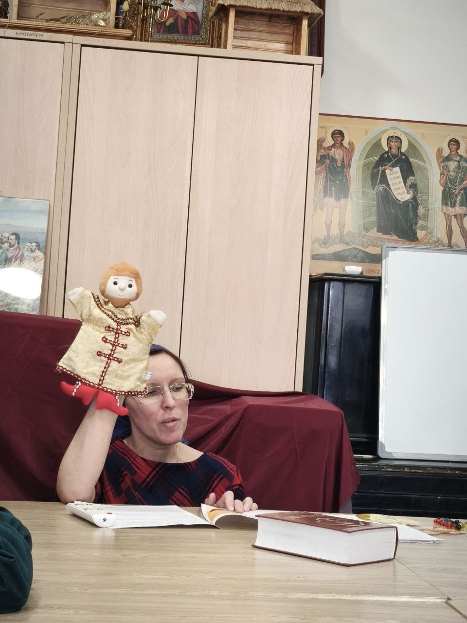 Со старшими воспитанниками на уроке клиросного пения Варвара Владимировна продолжила разучивать кондак "Воскресения Христова".