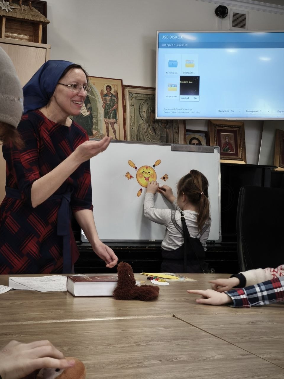 В воскресенье 08.03.2026 г. после совместной молитвы и чаепития на уроке "Добротолюбие" мы говорили с детьми о роли слова, о том, как словом можно утешить, согреть, приободрить, обрадовать, и наоборот опечалить, расстроить, огорчить. Словом сотворил Господь наш мир «В начале было Слово, и Слово было у Бога, и Слово было Бог» (Ин. 1:1) прочитали мы в Библии.
