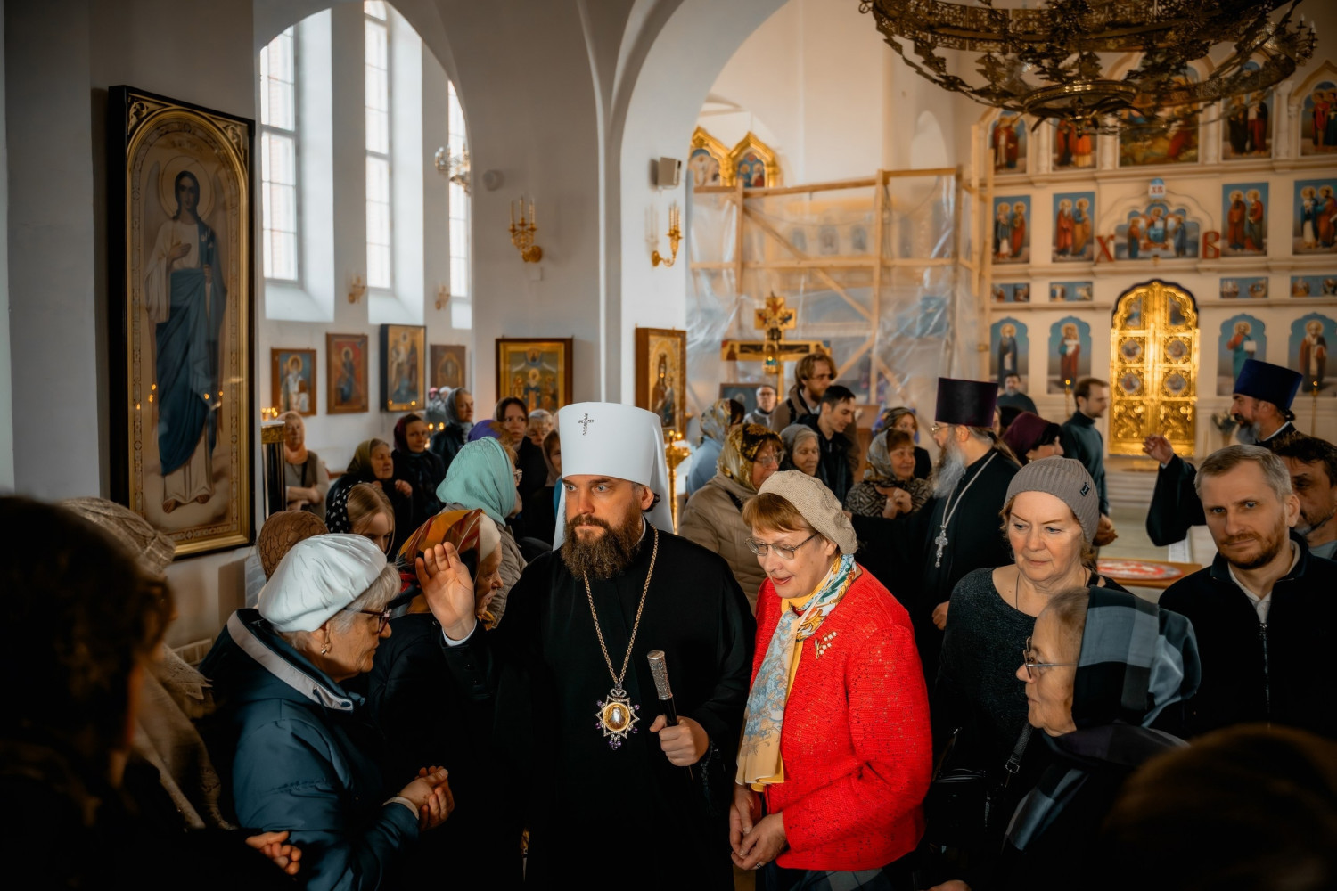 По окончании богослужения настоятель храма протоиерей Ростислав Ярема поприветствовал Владыку и поблагодарил его за радость совместного молитвенного общения и преподнёс архипастырю в дар на молитвенную память наградной крест с украшениями.