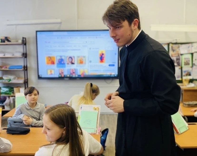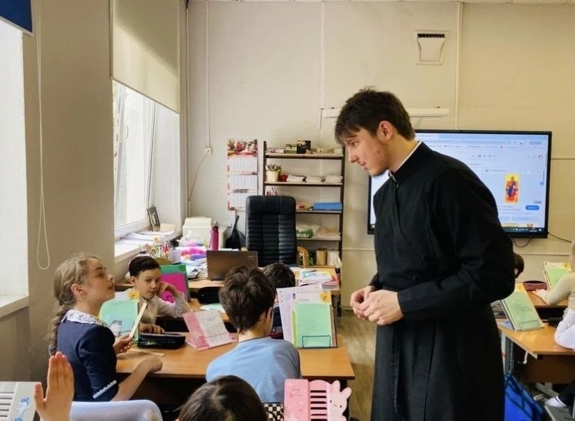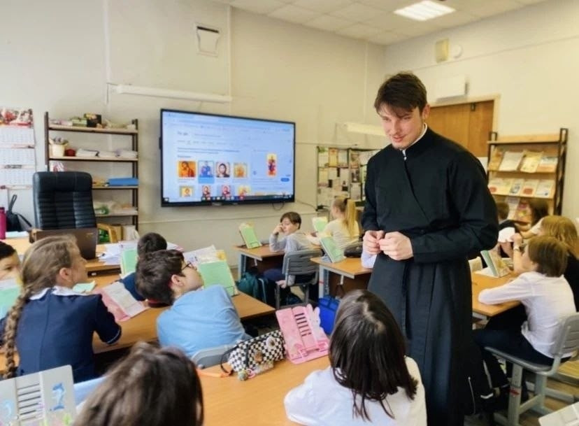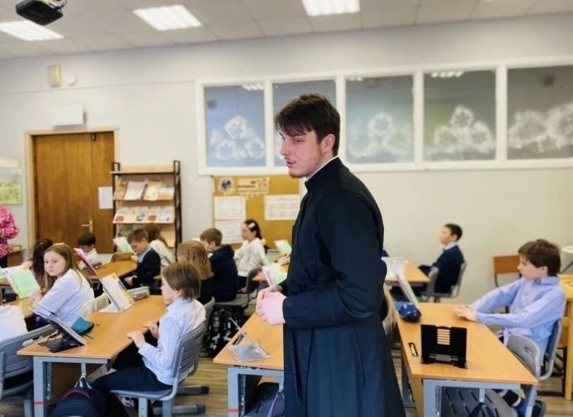 Семинарист Московской Сретенской духовной академии встретился с учащимися школы №1503 Алексеевского района Москвы